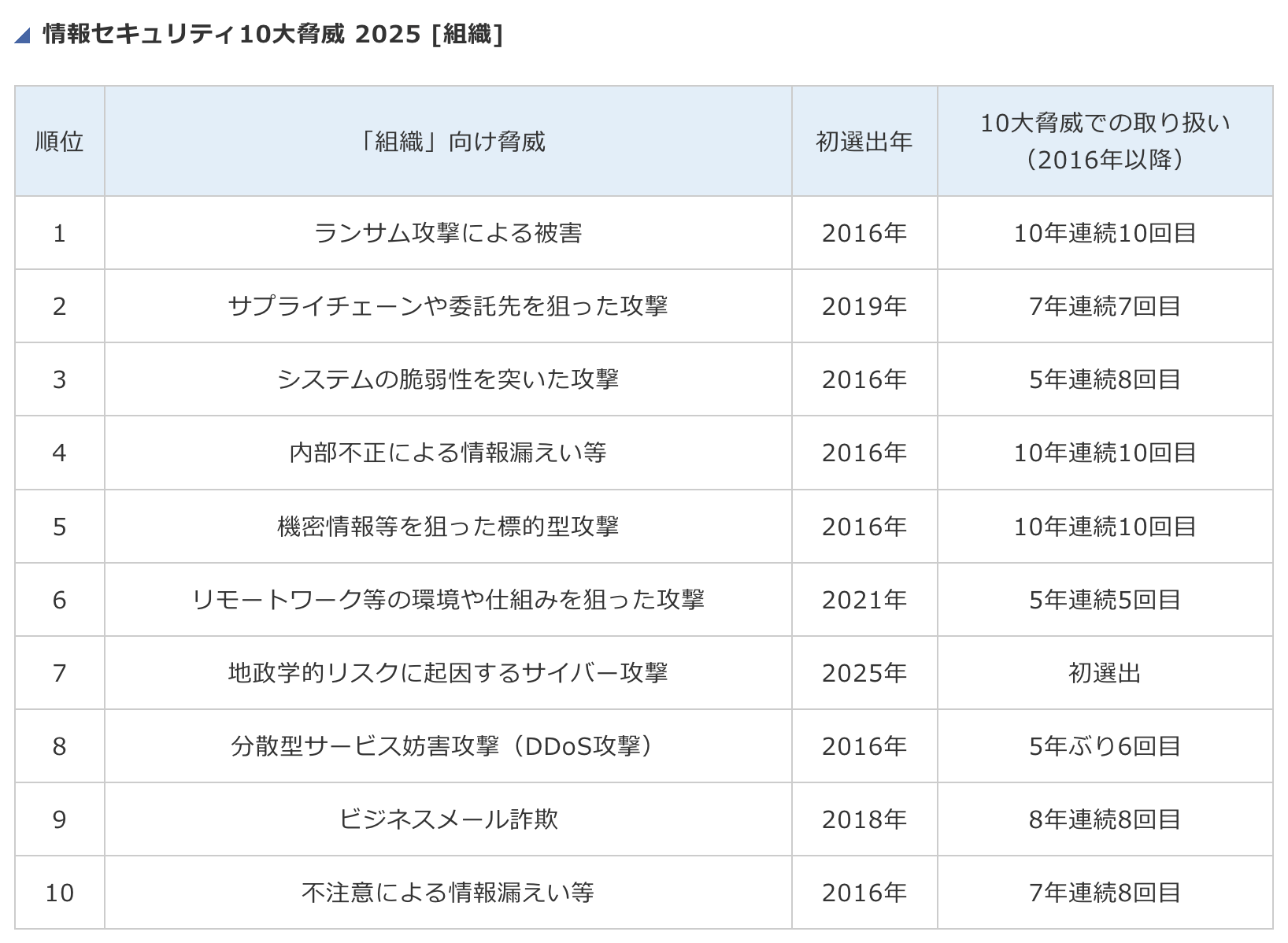 情報セキュリティ10大脅威 2025|IPA 独立行政法人情報処理推進機構